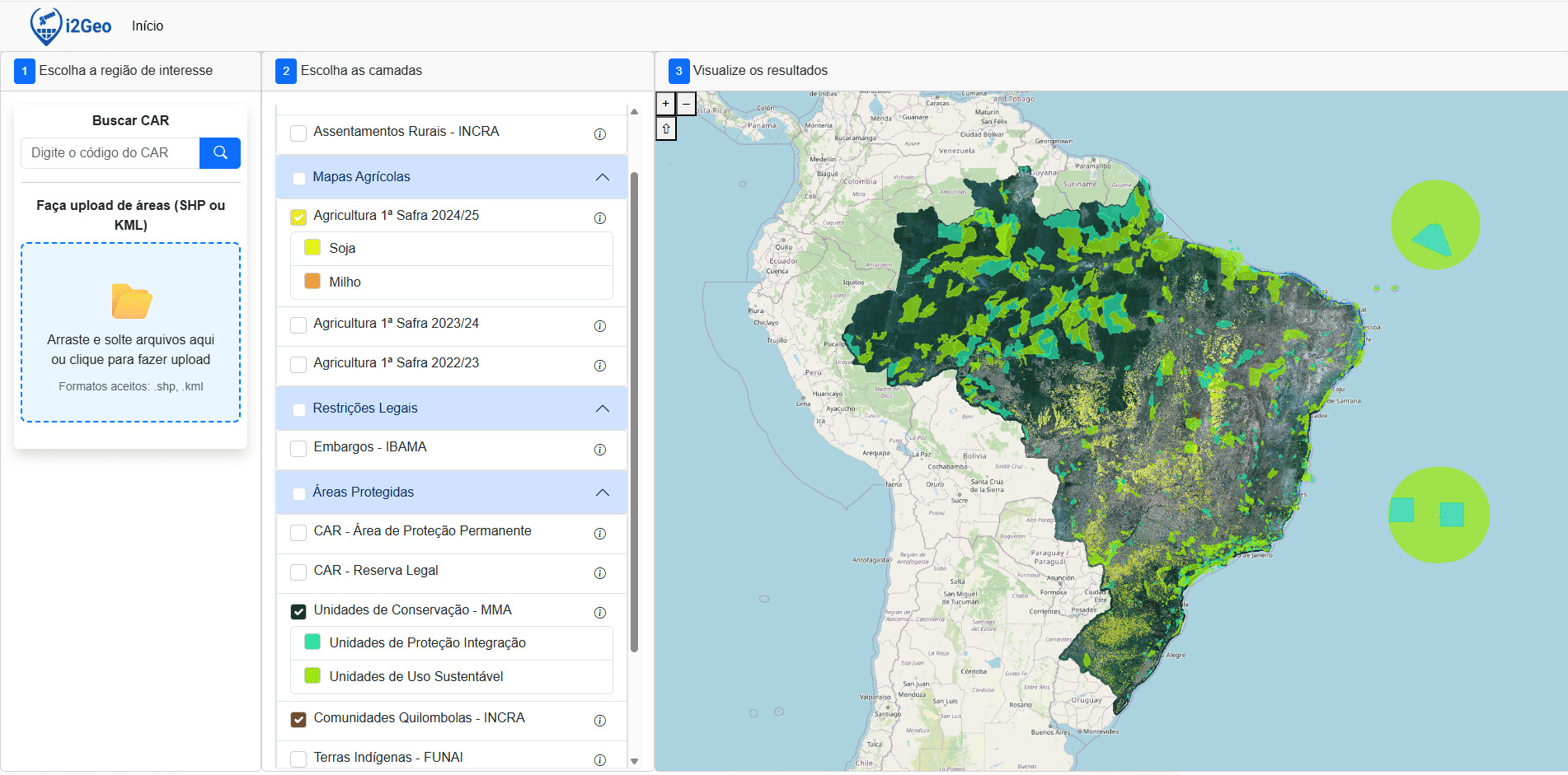 Valide a conformidade de propostas com o i2Check e monitore a performance produtiva com o i2Crop. Inteligência completa para o ciclo do crédito e do seguro rural.